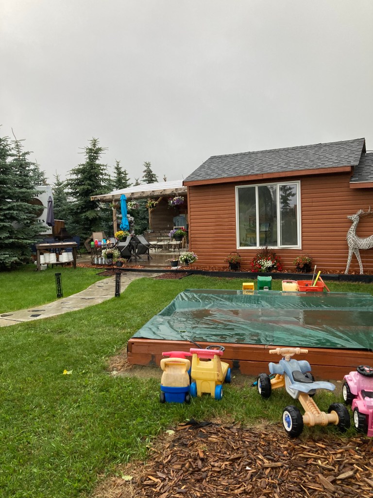 If you come to pick saskatoons today, July 22, be sure to wear your rain gear because the grass and bushes are wet! There are no prepicked options available until later in the season.