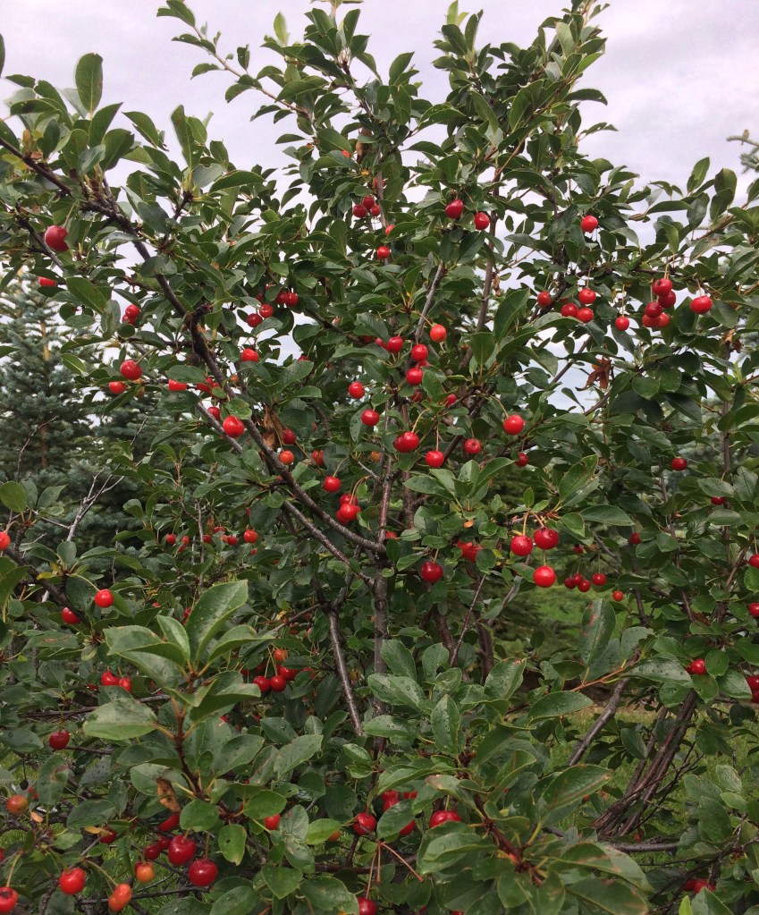 The vast majority of our u-pick is our delicious, super-healthy saskatoons. Depending on the year, we can also offer a very limited amount of raspberries and sour cherries.